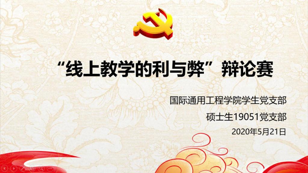 学生党支部于5月21日20:00开展共建活动,以“线上教学究竟利大于弊,还是弊大于利”为题开展辩论活动。来自两名支部的六名辩手参加了本次辩论,国际通用工程凯发