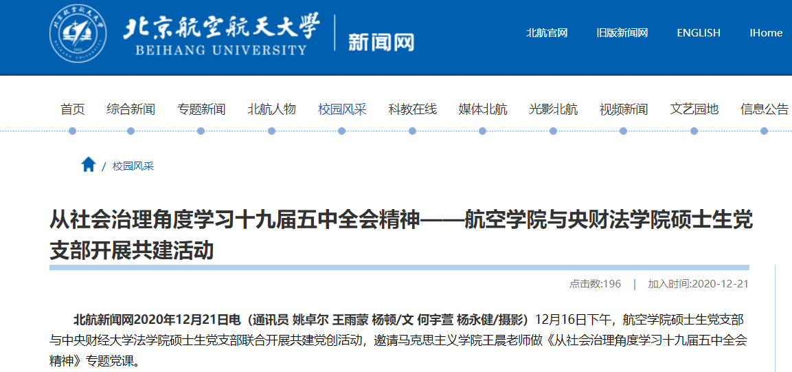 王晨老师担任主讲人。王老师通过多重维度,运用多种方法为各个支部、不同专业同学提供了理解会议精神的全新视角,促进了思维交汇。在课程讨论的过程中,两校同学加强了支部党员交流,增进了共建互联友谊。该活动分别在北航新闻网和央财法凯发
