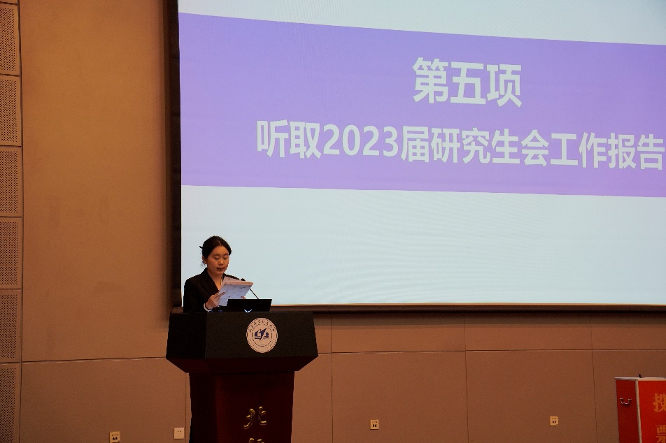 2023届研究生会主席团成员李金瑛宣读凯发第四次研究生代表大会代表资格审查报告,并征询了与会代表的意见。