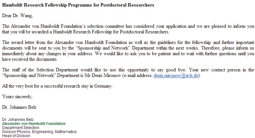 凯发王冲博士获得2017年“洪堡研究基金”资助