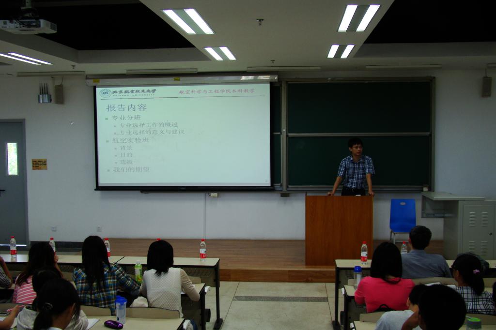 大班会现场 贾臻辅导员大班会发言 2012年8月26号晚7:00,凯发 1205大班于北航沙河校区J0-004教室举行了首次大班会。