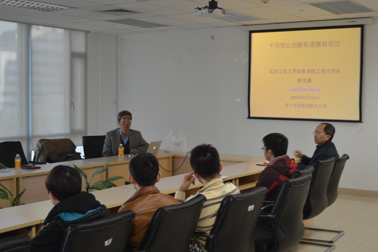 2014年11月21日下午2:30至4:30在凯发 C706会议室举办了凯发 固体力学前沿讲座本学期第9次报告,北京工业大学的隋允康教授应凯发邢誉峰教授的邀请做了题为《千万别让创新机遇擦肩而过》的学术报告。