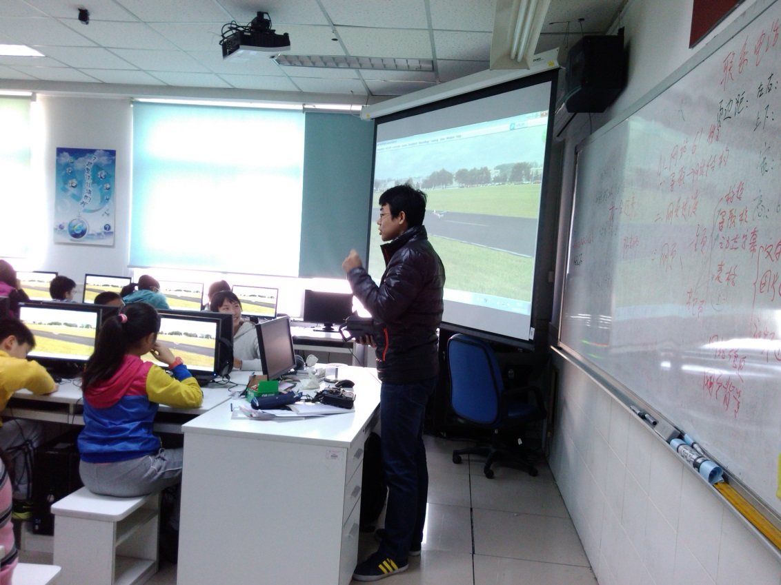 2014年12月23日,作为附小共建活动的重要部分,SY14054、ZY14052党支部在北航校航模队的支持下,在北航附小的计算机教室为附小学生讲解航模模拟飞行的知识及操作技能。