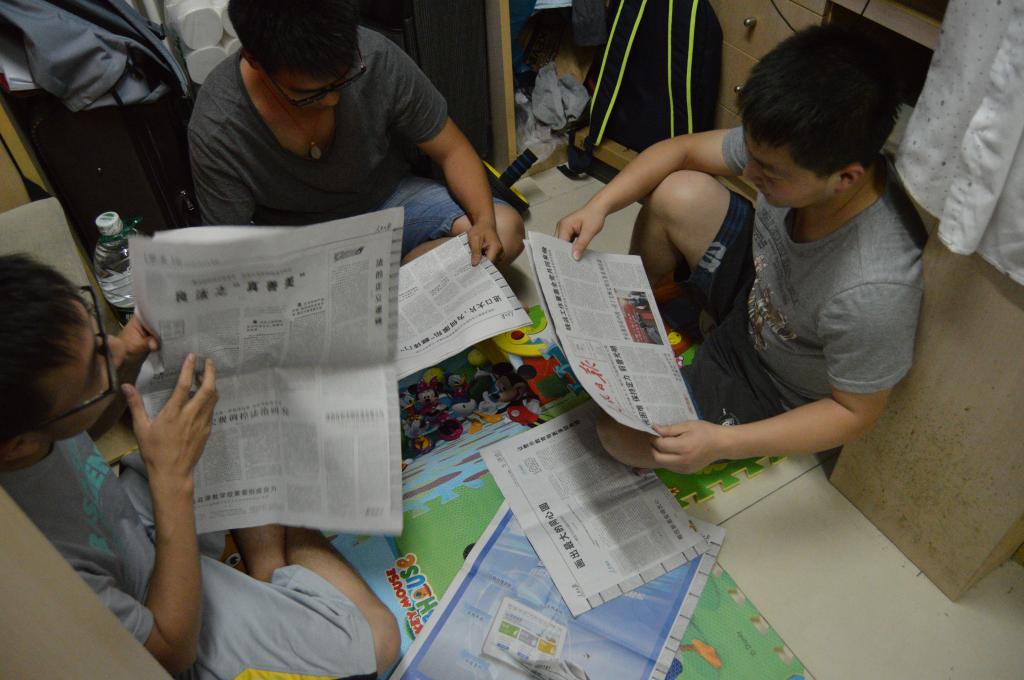 2015年5月25日晚,ZY14053党支部组织支部成员在宿舍一起阅读人民日报,一起探讨分析个人理解。
