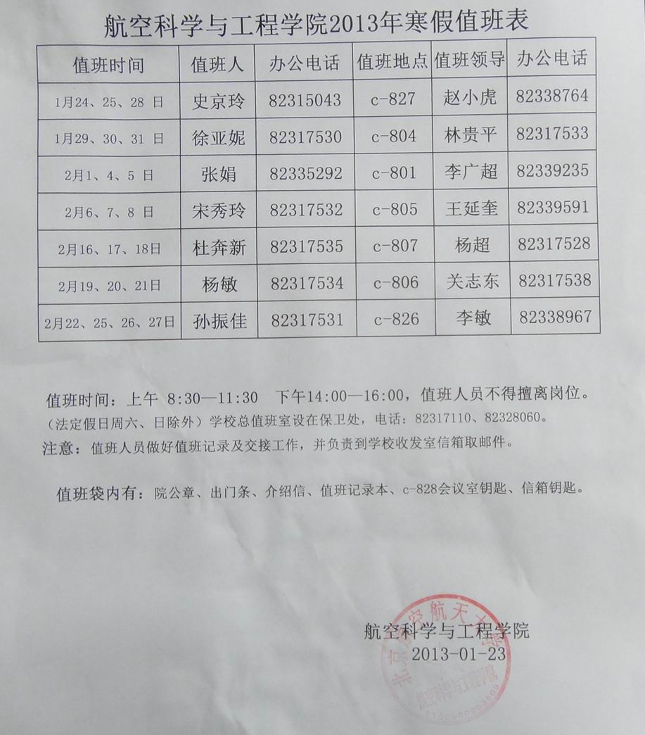 凯发 2013寒假值班安排